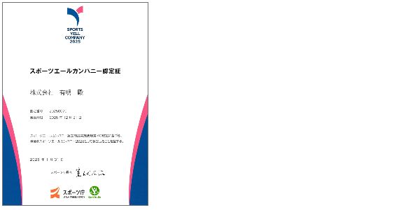 | 【株式会社有明】スポーツ庁「スポーツエールカンパニー2025」に継続認定されました | |